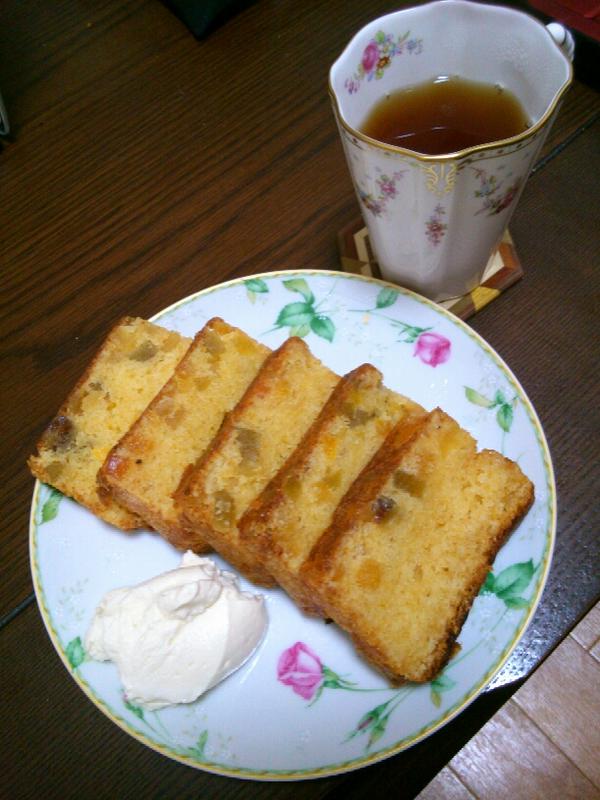 夏は苺が手に入りにくいので、ドライフルーツのブランデー漬けでパウンドケーキを焼きました。